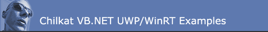 Chilkat HOME Android™ Classic ASP C C++ C# Mono C# .NET Core C# C# UWP/WinRT DataFlex Delphi ActiveX Delphi DLL Visual FoxPro Java Lianja MFC Objective-C Perl PHP ActiveX PHP Extension PowerBuilder PowerShell PureBasic CkPython Chilkat2-Python Ruby SQL Server Swift 2 Swift 3,4,5... Tcl Unicode C Unicode C++ Visual Basic 6.0 VB.NET VB.NET UWP/WinRT VBScript Xojo Plugin Node.js Excel Go